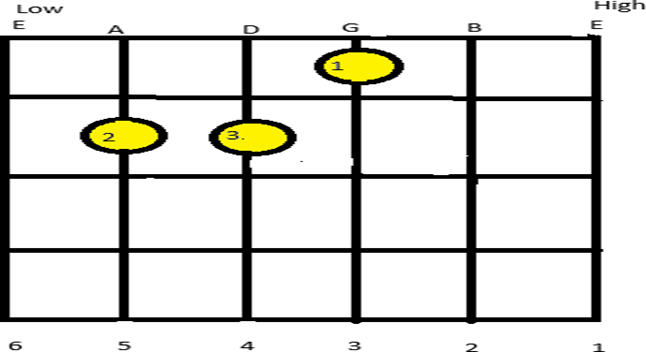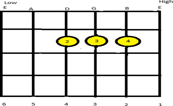 hand near the sound hole, while the chords are created with varying placements of the fingers of the